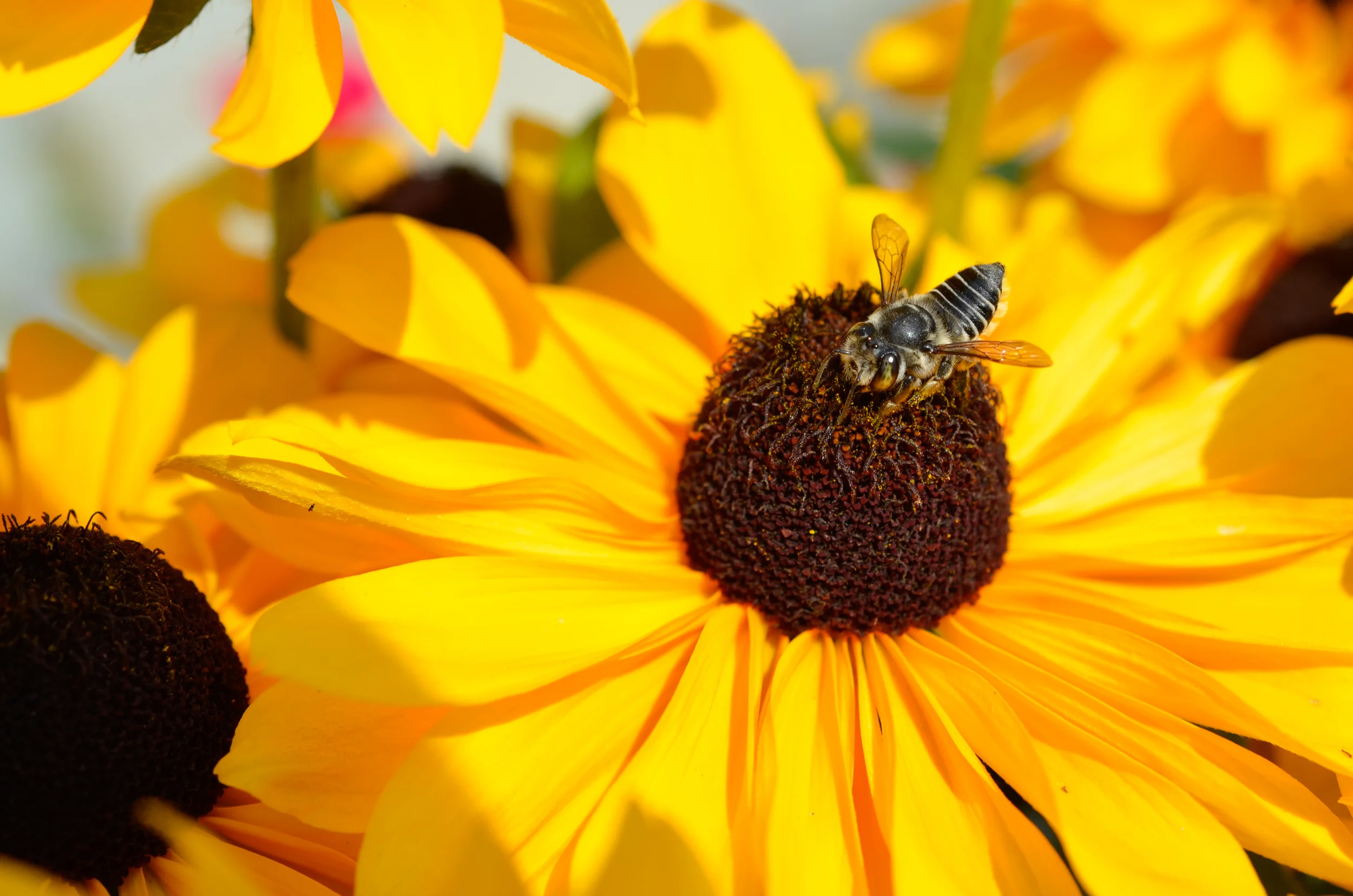 One warm sunny morning I proceeded to head out the front door to see what I could photograph. After stepping off her hipster influenced designer porch I see bees pollinating flowers...
